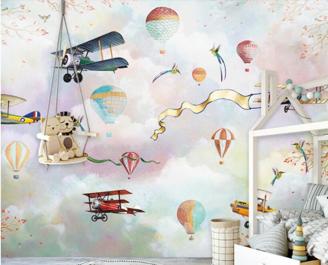 Cartoon Hot Air Balloon Wallpaper Clouds And Cherry Blossom Etsy De